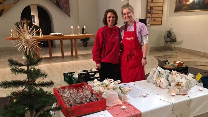 Doch auch die Stimmung ist festlich an diesen zwei besonderen Ausgabetagen in der Hochmeisterkirche. Wir dekorieren die Gabentische und es spielt Musik. Besonders schön ist es dann, wenn Herr Krätschell und Herr Hagitte uns besuchen und am Klavier spielen. Im Vorfeld trifft sich das Team, die freiwilligen Helfer von Laib und Seele, um die Geschenke vorzubereiten. Das macht Spaß und es macht auch zufrieden. Viele Menschen sammeln und spenden für Laib und Seele. Nicht nur in der Adventszeit. Das ist ein großes Glück, das wir sehr zu schätzen wissen! So ist es uns möglich, unseren Kunden ein wenig Besinnlichkeit mit auf den Weg zu geben in der Adventszeit, dieser besonderen Zeit. Alle Jahre wieder!