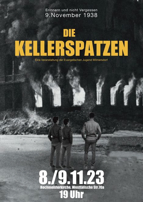 Am 8 und 9. November 2022 jeweils um 19:00 Uhr führen Jugendliche aus der Ev. Jugend Charlottenburg-Wilmersdorf ihre neue Theatercollage zum Gedenken an den 9. November 1938 auf. Beteiligt an der Entwicklung waren Emilia Langer, Klara Eisert, Luise Wolf, Luise Ahles, Pauline Rinnert, Victoria Kämmer und Sabine Maaß. Wir setzen uns wieder mit den Folgen des Nationalsozialismus und den Folgen des zweiten Weltkriegs auseinander.