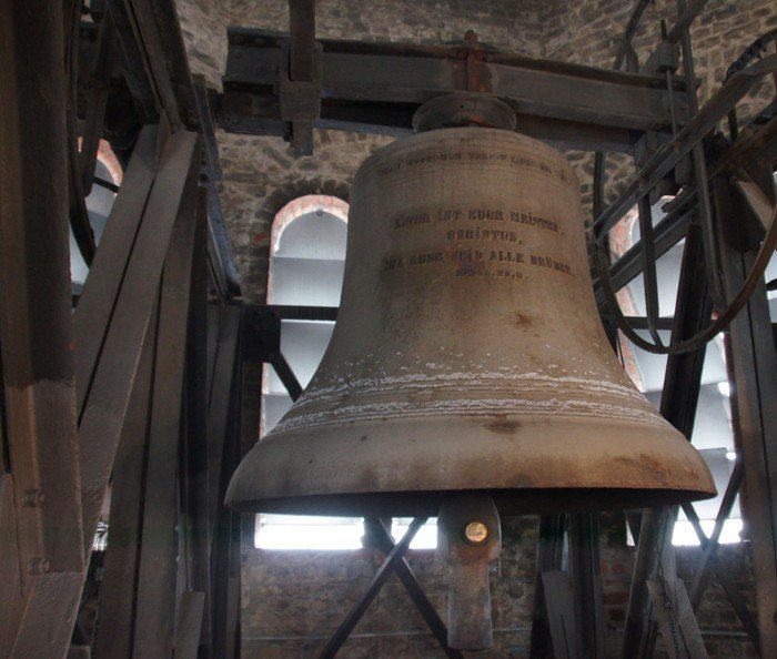 Zwei Jahre nach der Aufhängung der Glocken wurde der Bolzen, an dem der Klöppel der großen Glocke hängt, ausgewechselt